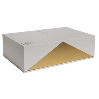 Caja de regalo de cosméticos de cartón con estampado UV blanco y dorado con doble puerta abierta de diseño de lujo ROGOOD con cierre magnético P1014