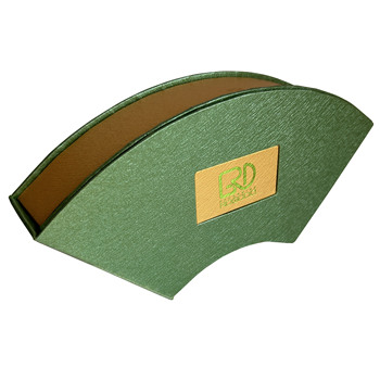 Caja de muestra de perfume en forma de abanico de lujo ROGOOD hecha con papel texturizado especial exquisita artesanía forma única elegante caja verde P2141